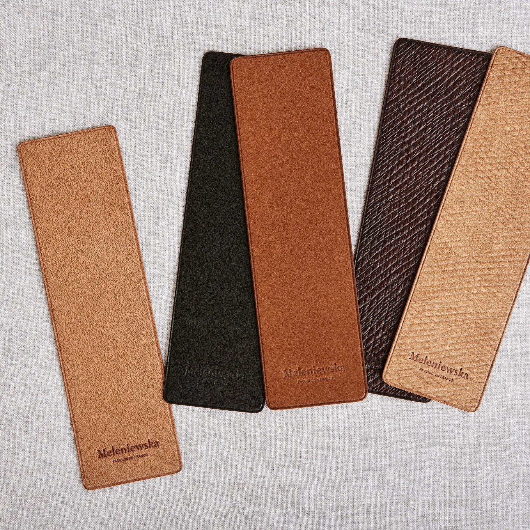 Disponibles en 4 coloris, les marque-pages Meleniewska sont doublés "cuir contre cuir" grâce au procédé de contre-collage. Parmi les plus fins du marché avec seulement 1.2mm d'épaisseur, ils sont accompagnés d'un étui en papier, idéal pour un cadeau raffiné. La personnalisation est possible par gravure laser ou marquage à chaud.